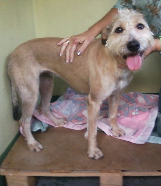 em um hotelzinho, sustentada por uma protetora que não tem como levá-la para